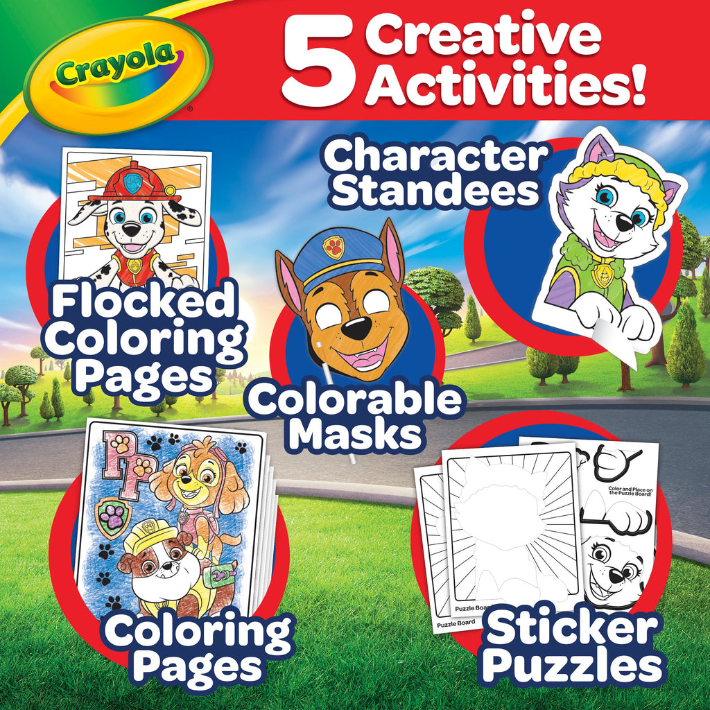 ARTS & CRAFTS ACTIVITIES: Kids team up with their favourite Paw Patrol characters in colourful ways with this one-of-a-kind colouring set. Colour sticker sheets, fuzzy character colouring pages, pop out paper masks, and character standees with backgrounds!