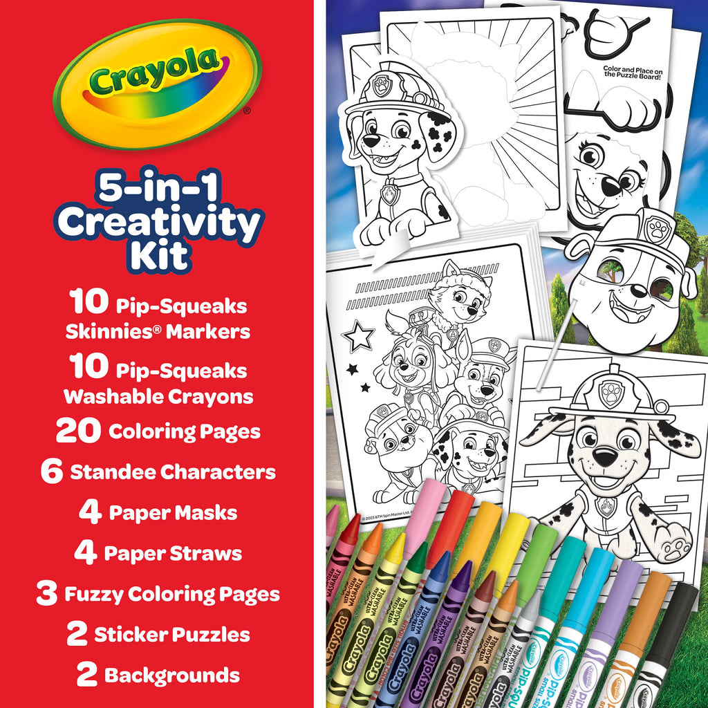 PAW PATROL ACTIVITY KIT: Includes 20 Colouring Pages, 3 Fuzzy Colouring Pages, 2 Colourable Sticker Puzzle Sheets, 2 Colour and Build Backgrounds, 6 Character Standees, 4 Paper Masks, 10 Pip-Squeaks Markers and 10 Washable Crayons.